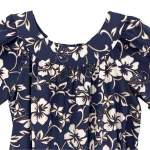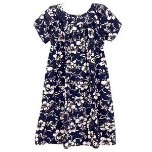 Hilo Hattie Hawaiian Originals Blue & White Hibiscus Dress Mumu Women’s Size L