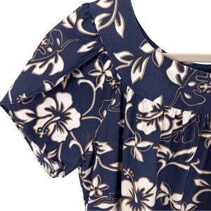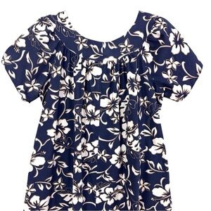 HILO HATTIE Hawaiian Originals Blue and White Hibiscus Dress Womens Size L