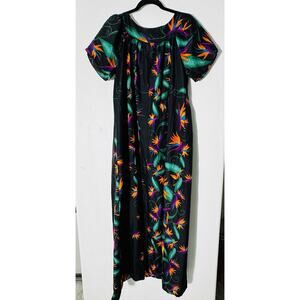 HILO HATTIE MAXI DRESS HAWAIIAN ORIGINAL VINTAGE FLORAL L MUMU TROPICAL VACA