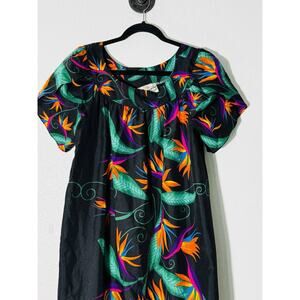 The HILO HATTIE THE HAWAIIAN ORIGINAL VINTAGE BLACK FLORAL MAXI DRESS in size L is a stylish and unique piece for women who love Hawaiian-inspired fashion. With a beautiful floral pattern in vibrant colors, this long maxi dress features short sleeves and a flattering silhouette. The brand Hilo Hattie is known for its quality and retro designs, making this dress a standout addition to any wardrobe. Whether for a casual day out or a special occasion, this dress is sure to make a statement.