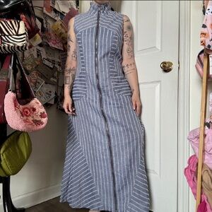 HILTON HOLLIS ZIPPER DENIM MAXI DRESS SIZE 10