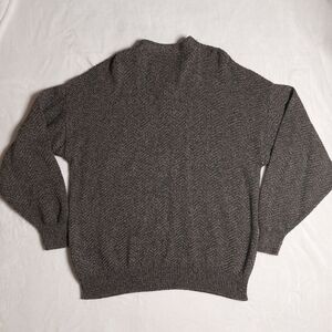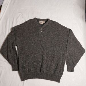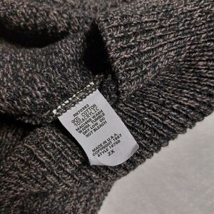HIMALAYAN Outfitters Men's Brown V-neck long sleeve Sweater size 2X. COTTON AND ACRYLIC BLEND. Made in the USA. SWEATER COLOR APPEARS TO BE BROWN/BLACK OR NAVY. HENLEY STYLE COLLAR. MEASUREMENTS PROVIDED.