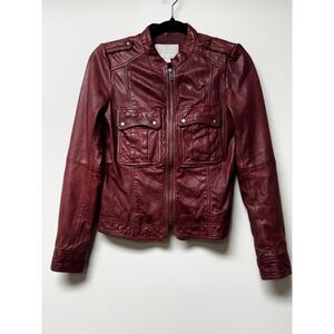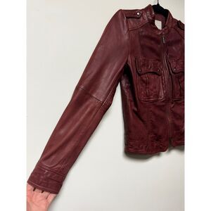 HINGE Genuine Leather Patch Whiskey Brown Zip Front Jacket, Sz XS