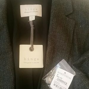 HINGE designed in Seattle, from NORDSTROM. NWT, LONG SLEEVE, RUFFLE, MATALLIC BLACK WOMEN'S BLAZER, ONE BUTTON.
