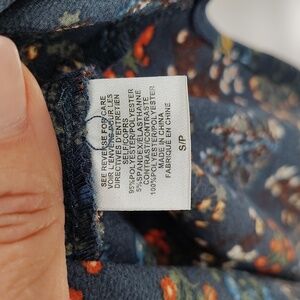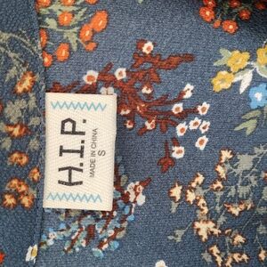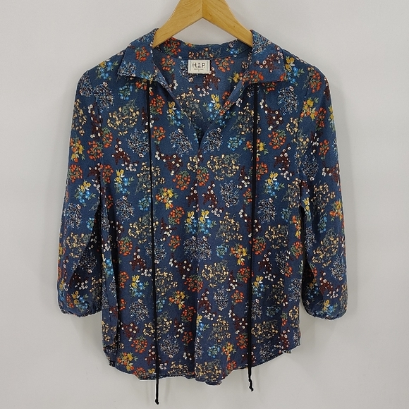 H.I.P Blouse Size Small Blue Floral Print V Neck Fall Color Top Semi Sheer