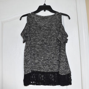 Style: Grey colored with cold shoulder style and black lace trim on the bottom