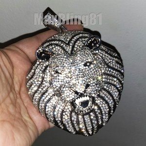 HIP HOP JEWELRY ICED LAB DIAMOND JUMBO SIZE LION HEAD BLING RAPPER CHARM PENDANT