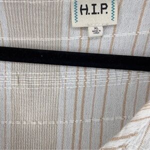Elevate your wardrobe with the Linen Blend Striped Top. This cream-colored top offers a relaxed fit and a stylish striped pattern, perfect for any casual outing.