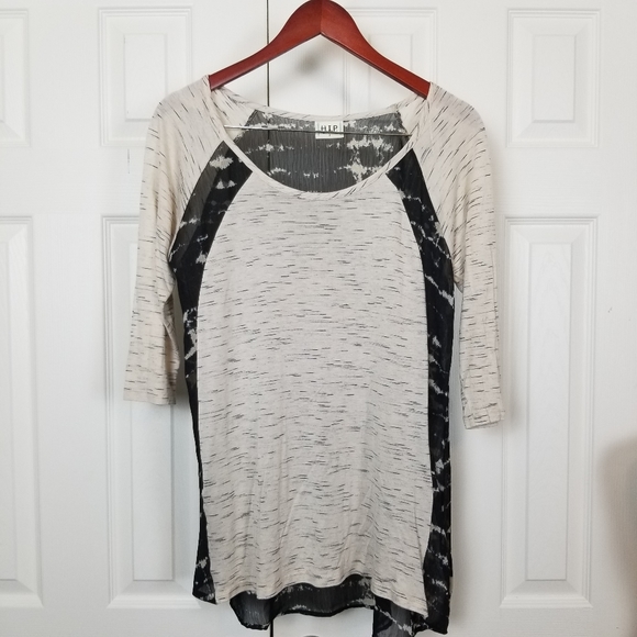Back is sheer. Length Sleeves 16" , Front 23", Back 28" EUC G
