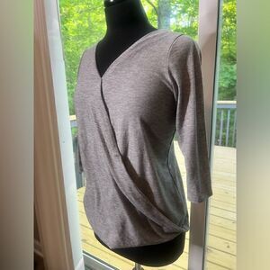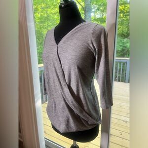 H.I.P Grey Crossover Top Size Small Long sleeves Grey PTP 19” Length 22.5” 63% polyester 32% rayon 5% spandex