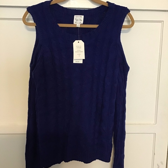 A classic cable-knit design adds timeless style to this sweater with flirty cold-shoulder cutouts from Hippie Rose.