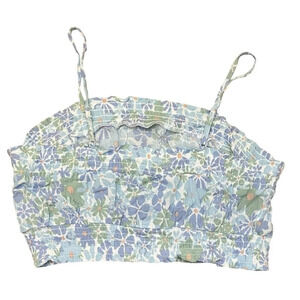 HIPPIE ROSE Printed Smocked Tank Top Juniors Small Blue Floral Sleeveless