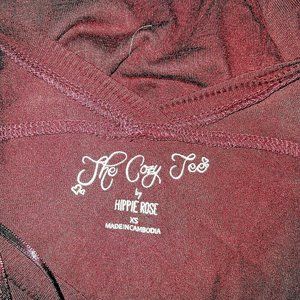 HIPPIE ROSE The Cozy Tee Top Size XS Dixie Garnet V Neck Long Sleeve
