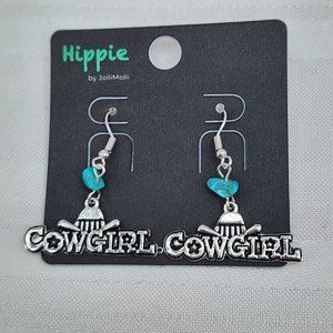 Silver Tone Cowgirl Western Statement Earrings Dangle Drop NWT