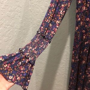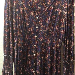 This long sleeve dress is ultra comfy. There is elastic in part of the arm and then it flares out at the end, very boho hippy style. Has buttons down the front. Wear with heels to be cute and flirty, or add boots and a hat for a more grunge, rocker look. Any questions please ask!