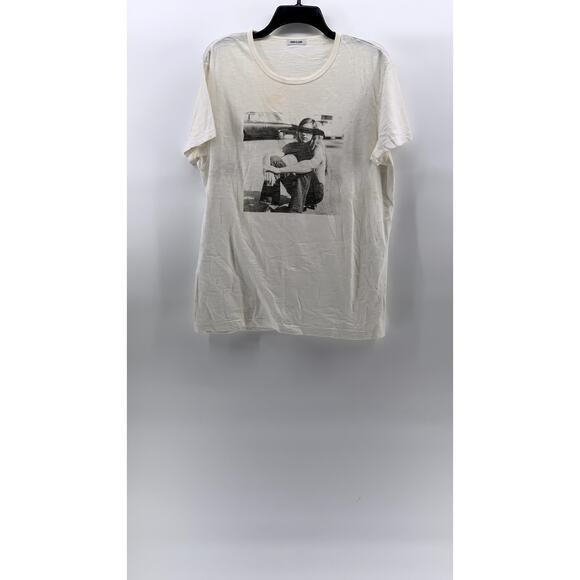 HIRO CLARK Men's White-Black Graphic Crewneck Short Sleeve Casual T-Shirt SZ M