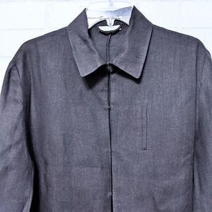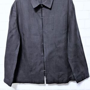 Lightweight. Front hook and eye closure. Pockets. Unlined.