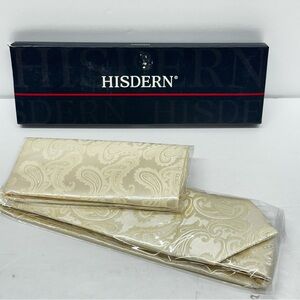 We are selling this brand new HISDERN paisley neck tie and pocket square set in the color champagne. Please review all pictures in close-up as they are part of the description.
