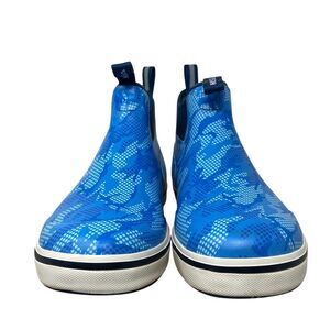 HISEA Men’s 13 Waterproof Rain Boots Blue Camo Rubber Slip On Chelsea Ankle Deck
