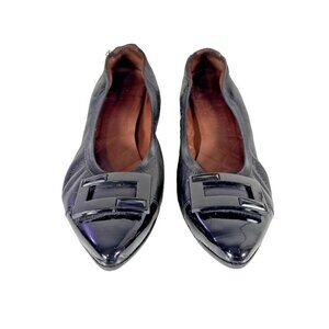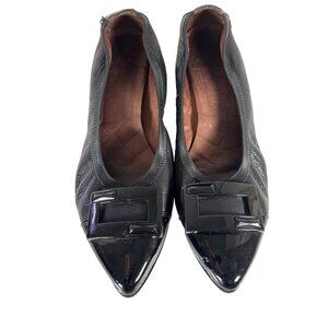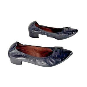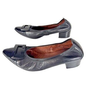 HISPANITAS Black Leather Slip-On Pumps Front Buckle Design US Size 8.5 EU 39.5