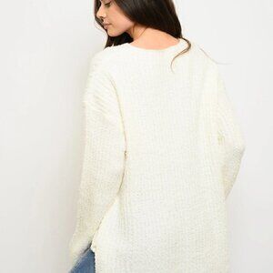 HIUG ME Cream So Soft Cozy V-neck Sweater top