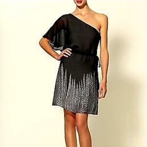 HIVE & HONEY ONE SHOULDER FEATHER DESIGN LBD