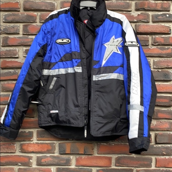 H J C Racing, Winter Riding Jacket, vented, adjustable Cuffs, adjustable waist, dual Zipper, collared, zippered Pockets with an interior zippered pocket, reflected material for better visibility, blue, black and silver in color, pictures are part of the discription.