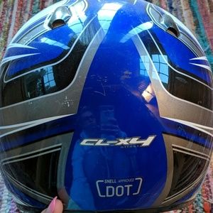 Used for 4-wheeling, size small but I'll fit a medium. Goggles come with. Minor scratches. Goggle straps stained red/orange from iron.