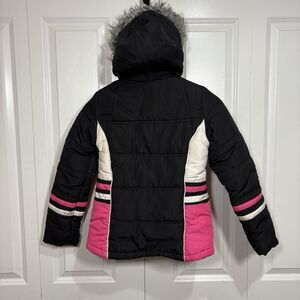 HK58 Hawke & Co Girls Jacket 10/12 Black Pink Puffer Hooded Winter Coat Warm Condition: Previously worn with moderate wear from use and/or washing.