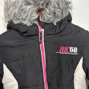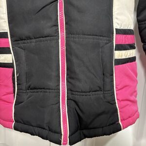 HK58 Hawke & Co Girls Jacket 10/12 Black Pink Puffer Hooded Winter Coat Warm