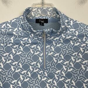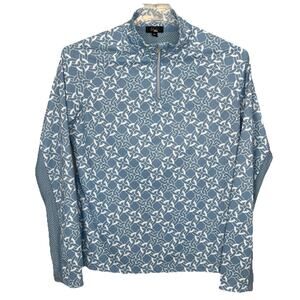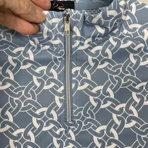 HKM Equestrian 1/4 Zip Top Women XL Light Blue Geometric Mesh Vented Horse Girl