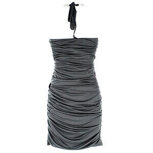 HKR $60 Sz S Black Ruched Silver Necklace Halter Poly Spandex Sexy Dress