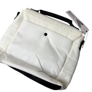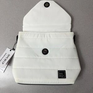 This listing is for a HKWp Puffer Crossbody (No Strap included) Bag. White/Black. Snap closure. Black handle at the top.