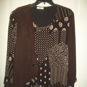 Unique looking HLM Collection, House of LeLamone multi-patterned, layered looking blouse by designer Lakisha Green, size 0X, NWOT, bust measurement is 23" from armpit to ampit, length 28", fabric polyester, viscose rayon