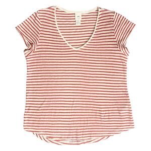 H&M 100% Linen Striped Short Sleeve Top Soft Cool V-Neck Tee Size Large