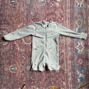 H&M 12-18 month Kids One Piece swimsuit rashguard in Green with Boat Pattern