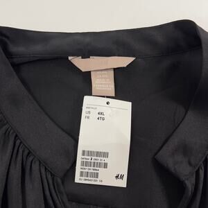 H&M 4XL NEW Black Silky Popover Top Balloon Sleeved Plus Size