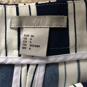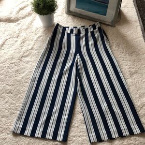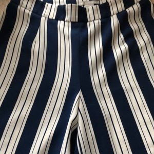 Striped pants, side zippered, Wide, straight legs.