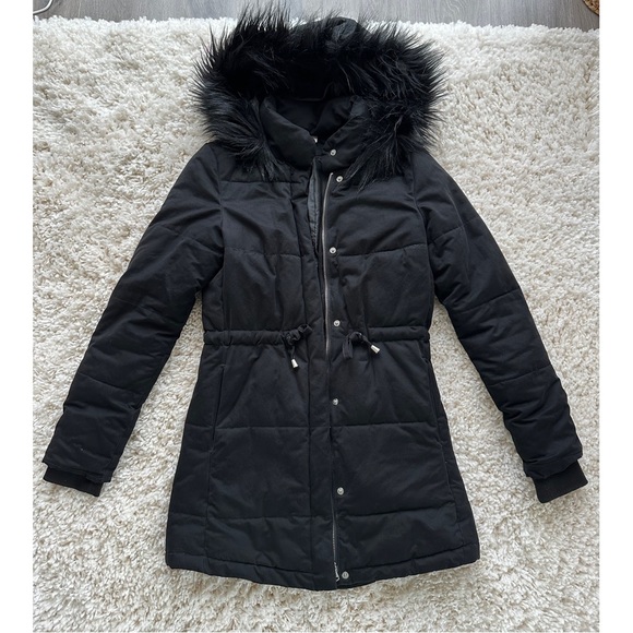 Lightly padded jacket perfect for the winter. Faux fur hood, non-detachable. No trade. Reasonable offers only.
