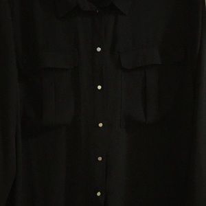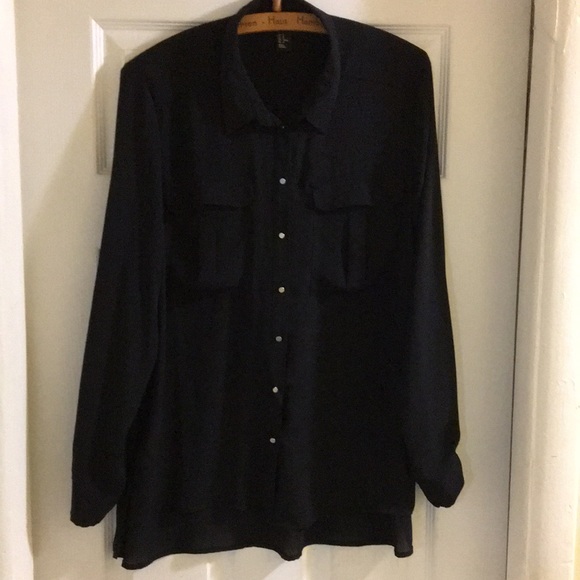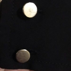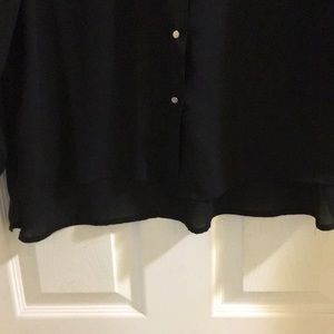 Like New 100% Polyester Slightly Sheer Dark Blue High/Low Blouse with Silver Tone Button Accents!