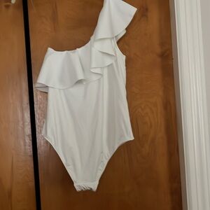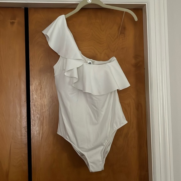 H&M swimsuit with one shoulder ruffle. Simple but chic, would make a great bachelorette suit. Never worn tags and liner attached. Size 12