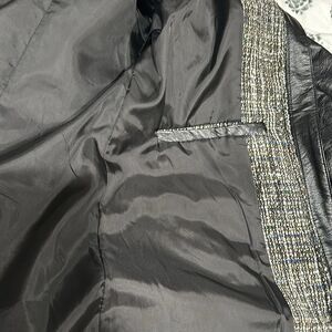 Tweed Boucle Faux Leather Sleeves Zip Coat Size 10/Large