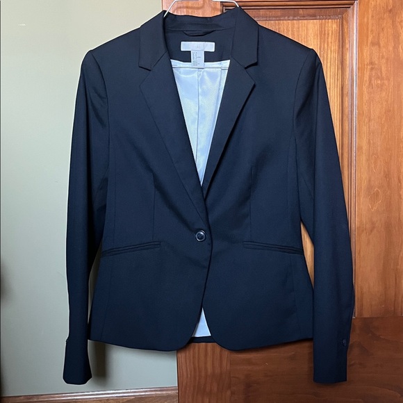 Classy H&M single-button navy blazer with notched lapels. Lightweight lined interior for smooth wear. Streamlined pockets and long sleeves for a professional finish. NWOT. Size 8.