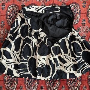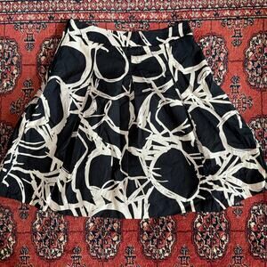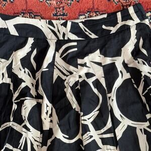 H&M 8 Black and Tan Abstract Print Pleated, Lined 100% Cotton Skirt CLEAN!
