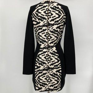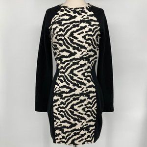 H&M boat neck long sleeve sheath dress. Color block style. Lightly stretchy black sleeves and sides, black and white animal print front and back. Back zipper closure. Women's size 8 / medium. Originally $40.