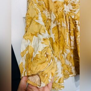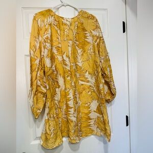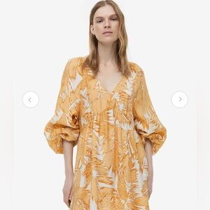 Short, A-line dress in an airy weave with a deep V-neckline and a gathered seam at the waist. Long, raglan-cut balloon sleeves with elasticated cuffs. Unlined.