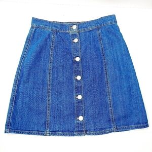 H&M A-Line Denim Skirt Button Front Sz 4 Hi Waiste