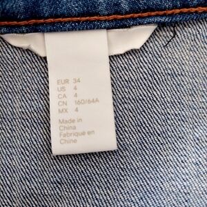 H&M A-Line Denim Skirt Button Front Blue Jean Mini High Waisted 100% Cotton, Size 4.