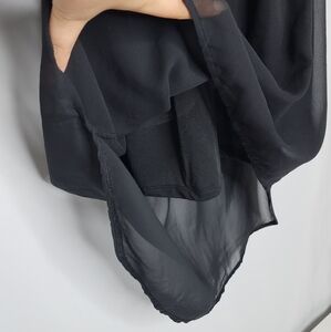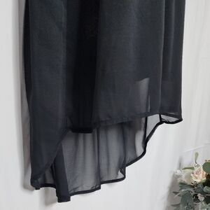 This elegant black midi dress from H&M showcases a sophisticated A-line silhouette with a stylish high-low hem. Crafted from lightweight fabric, it offers a graceful drape and fluid movement. Its versatile design ensures it complements various occasions effortlessly.