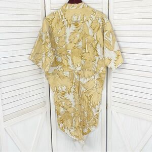H&M Abstract Leaf Print Tie Front Crop Blouse Tan Cream Large Half Sleeve